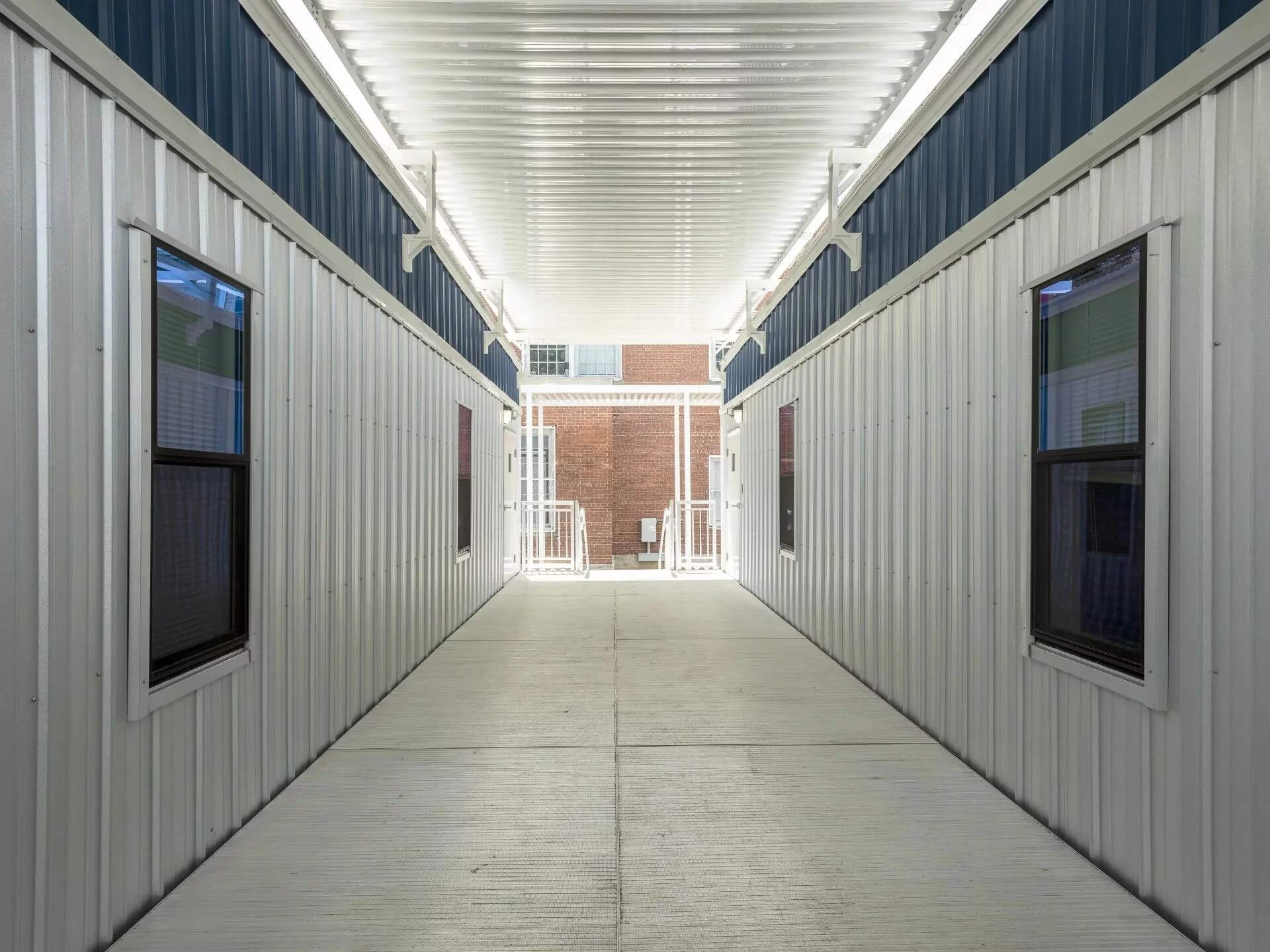 The elementary school’s occupancy was at it’s maximum so they were in need of additional classroom space. They chose modular construction for the speed of delivery. In addition to more classroom space, the school also wanted overhead protection for their students and staff to protect them from the weather elements.
